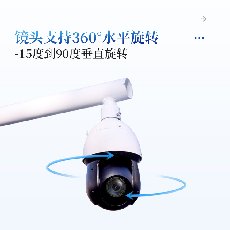 3. 摄像设备:800万像素,可实现自动光学对焦、自动曝光,25倍电动光学变焦, 2mm-125mm广域焦距;镜头支持360度水平旋转,-15度到90度垂直旋转