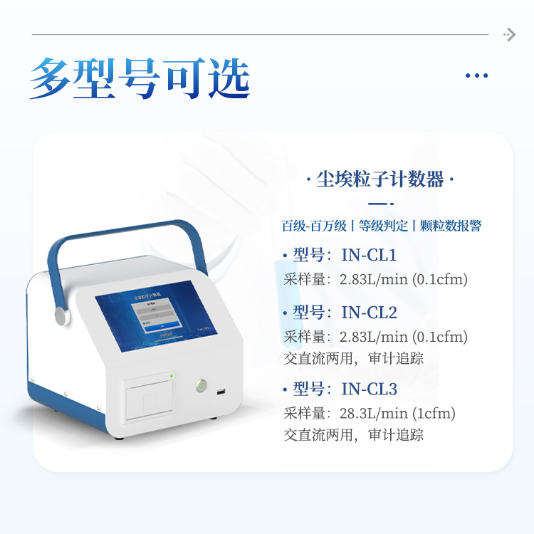简要描述: 新型尘埃粒子计数器IN-CL2其置信度测量检定标准按照国标GB/T6167-2007和校准规范JJF1190-2008规定的条件,对净化级别进行自动判断。一次采样可同时测得六个粒径通道的尘埃粒子数,并同时显示六个粒径通道粒子的数目及其变化情况。